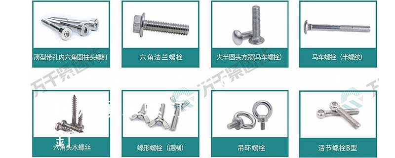 木螺釘有十字槽沉頭、十字槽半沉頭、十字槽圓頭、開槽(一字槽)沉頭、開槽半沉頭、開槽圓頭、六角頭等幾種,公稱直徑有1.6、2、2.5、3、3.5、4、5、6、7、8、10等系列,長(zhǎng)度有6、8、10、12、16、20、25、3